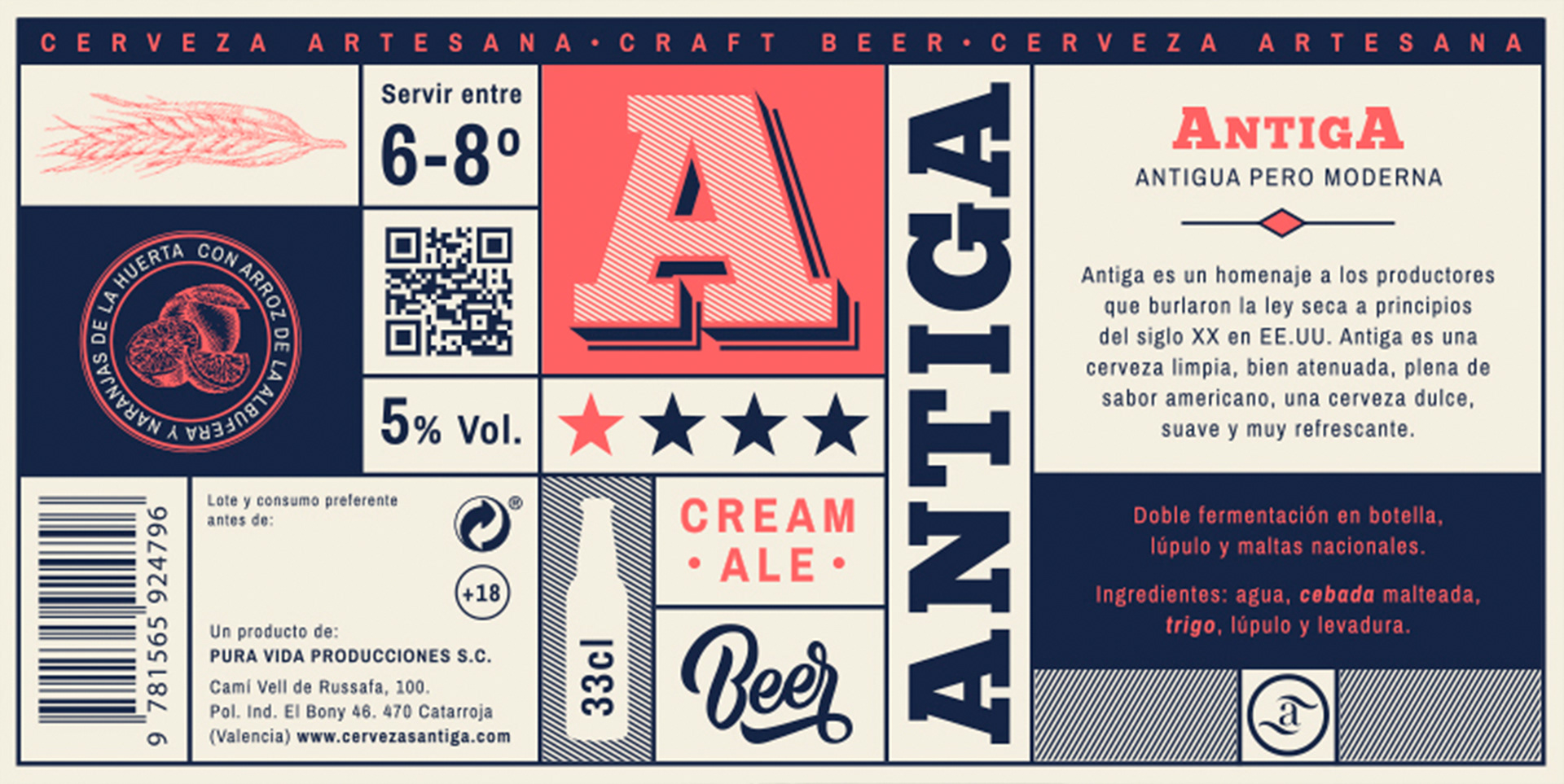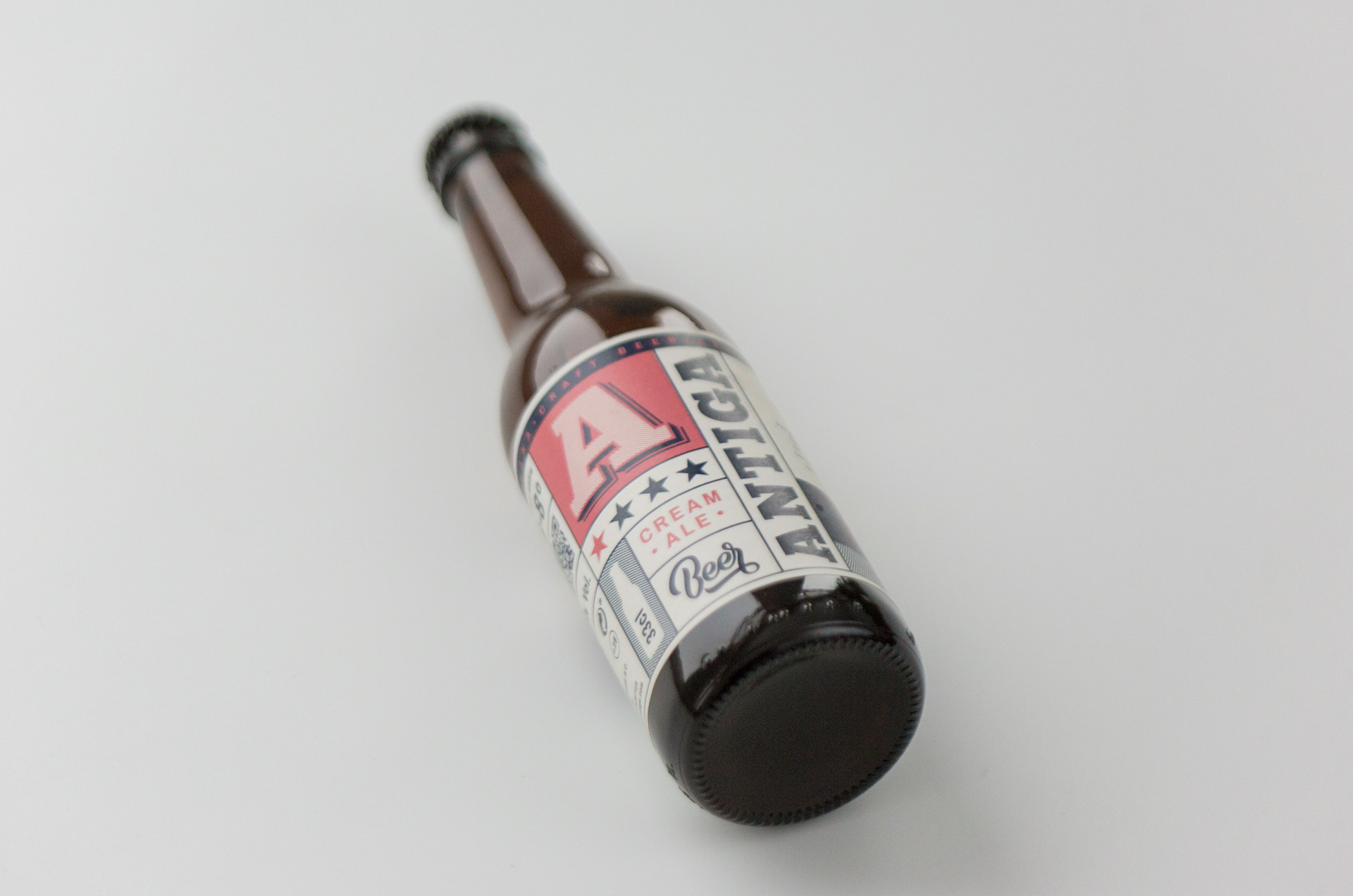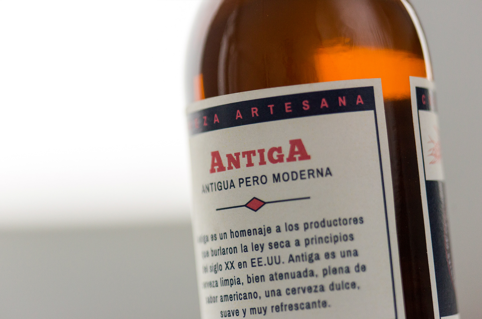 Diseño de etiqueta para Antiga, una cerveza artesana, elaborada sin aditivos. Un homenaje a los productores americanos que burlaron la ley seca a principios del siglo XX. Una cerveza antigua pero moderna.